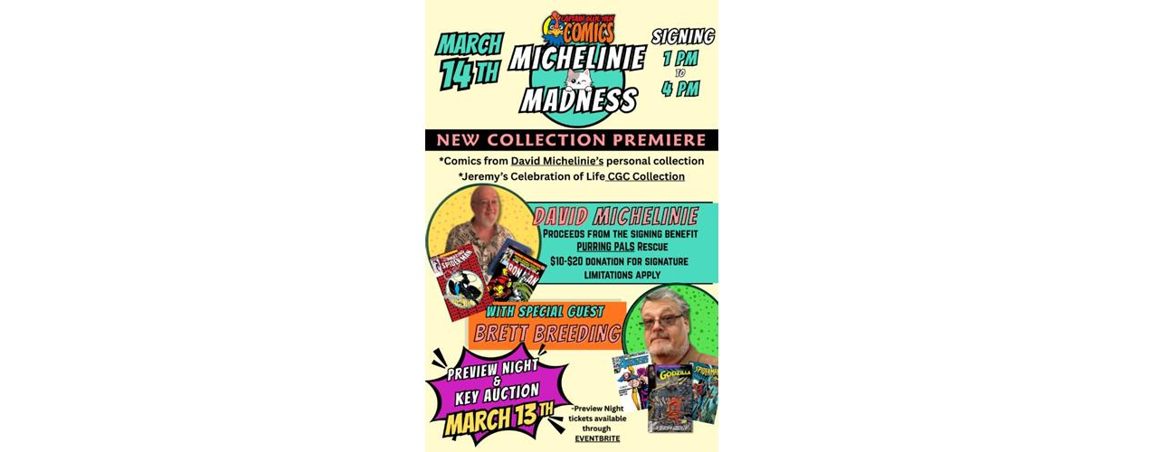 What: Signing Collection premiere- David Michelinie file copies Purring Pals rescue fundraiser Jeremy Celebration of Life CGC collection